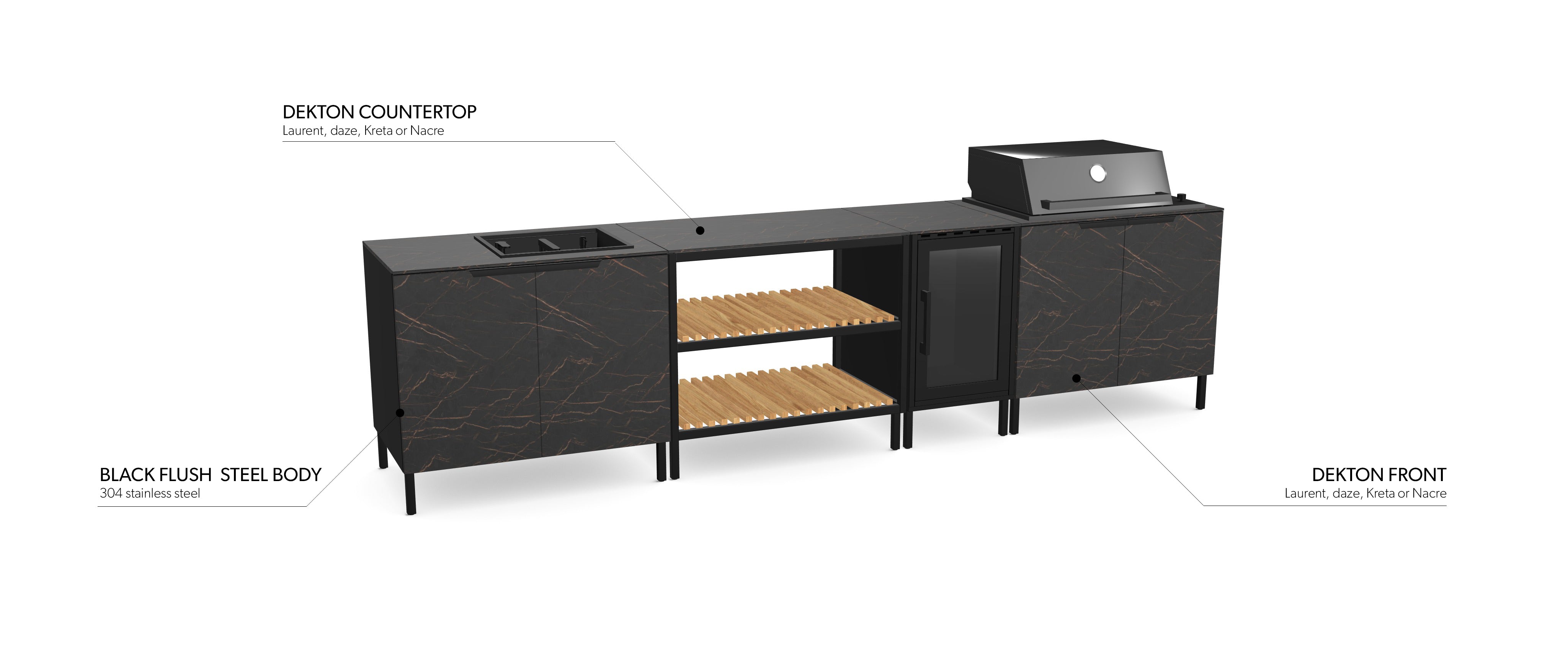 Used as cladding and worktop material, it adds not just beauty, but long-term durability to your outdoor kitchen.